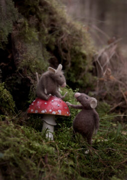 Nastąpił jednak okres w moim życiu, gdy nie tworzyłam. Zupełnie. Czasem coś sobie porysowałam. Kilka lat temu urodziłam dziecko, poczułam, że potrzebuję oderwać się od codziennych obowiązków. Zaczęłam fotografować moją córkę, czytać jej bajeczki. Na nowo przeżywać Boże Narodzenie, które tu, w Norwegii, jest niezwykle magiczne. Są też norweskie świąteczne piosenki o myszkach… To mnie zainspirowało. Myszki jako stworzonka żyjące wśród nas. To było to. Ponieważ nie mam cierpliwości do szycia, wybrałam technikę filcowania na sucho, o której już jakiś czas wcześniej myślałam, żeby spróbować, ale jeszcze nie miałam tematu. Już miałam.