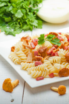 Makaron świderki z kurkami i kiełbasą z kurczaka